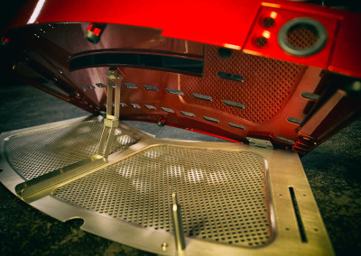 Each left and right handle has two 1/4″ jack holes. Guitars on the right, amps on the left – what could be more natural? Install your own cables or we have the perfect 1/4″ panel jack to 1/4″ female inline jack – we are happy to install them for you.